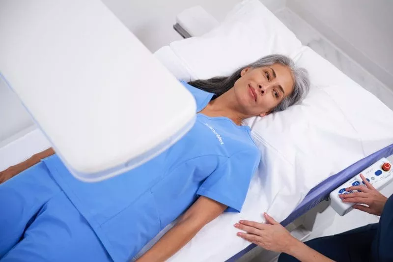 Yes. A DEXA scan is completely safe and uses very low levels of X-ray radiation—much less than a standard chest X-ray. The exam is quick, painless, and non-invasive.